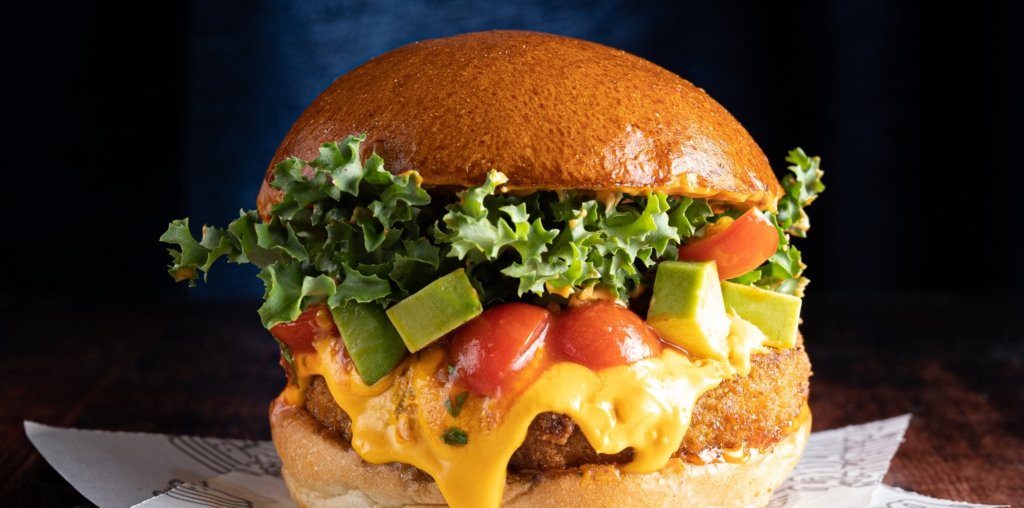 - California Avocado Burger: Mexican Spice Patty with Mozzarella, Hot Sauce, Cherry Tomato Salsa and Hass Avocado