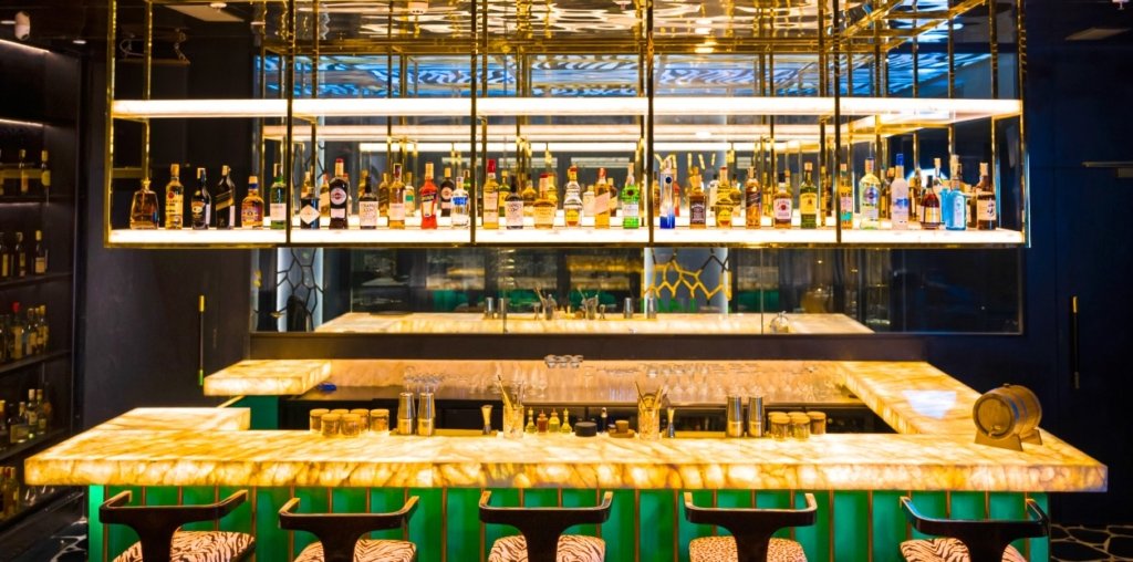 Designed to leave a lasting impression, the architectural masterpiece strays away from monotony, to offer its patrons a mesmerising view, one that is inspired by nature’s species. From the crystal chandeliers adorning the high ceiling, twin emerald green bars with a lit onyx marble, wildlife prints draping the walls to the golden floating pods, each corner has a surprise in tow.